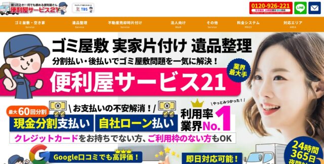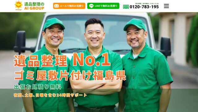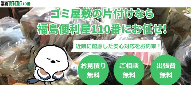 LINEを使って気軽に相談でき、分割払いや後払いの相談もできる。福島県の優良業者を紹介してくれるので安心してごみ屋敷の片付けを任せることも可能。 |