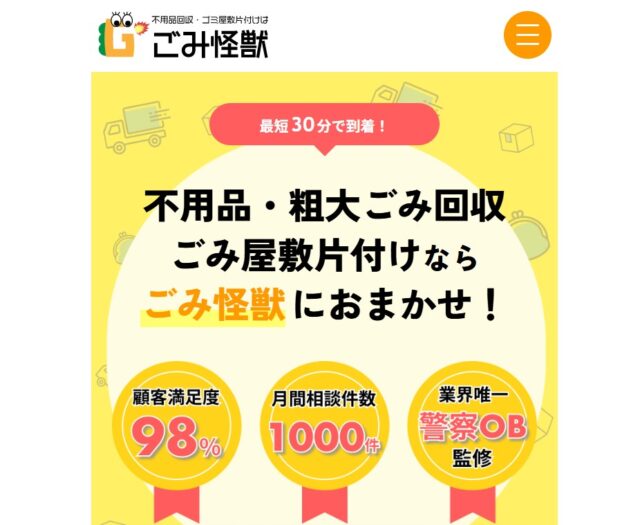 神奈川県で警察OBが監修しているゴミ屋敷片付け業者になり、年中無休で最短30分より片付けに対応しているのも特徴です。 |