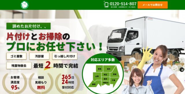 分割払いや後払いの選択もでき、お見積もり以降の追加請求もない。幅広い片付けに対応しており、お見積もりや出張費なども無料でできるため、安心できる。 |