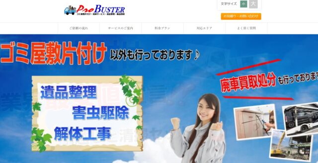 プロバスターは、静岡県で業界最安値でゴミ屋敷の片付けを行っている業者です。