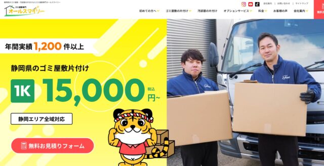 静岡県のゴミ屋敷に即日対応できるのはもちろん、支払方法の選択肢が多いのも特徴です。ゴミ屋敷の片付けはもちろん、遺品整理や特殊清掃など片付けに幅広く対応しています。