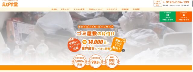 ゴミ屋敷の片付け実績も多く、現場まで最短60分とスピード対応も特徴です。