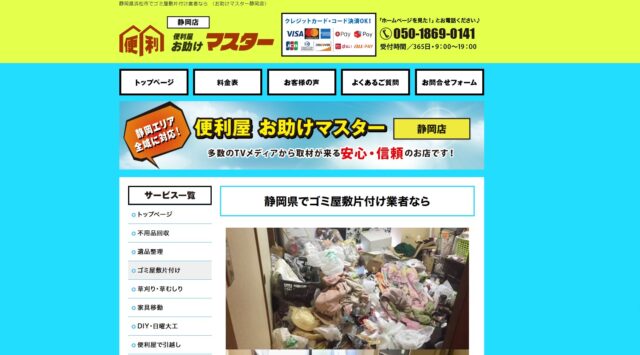 ゴミ屋敷の状態を問わずに片付けが可能で、女性スタッフ専用ダイヤルも用意している。カードやショッピングローンなど支払方法の選択肢が多いのも特徴。 |