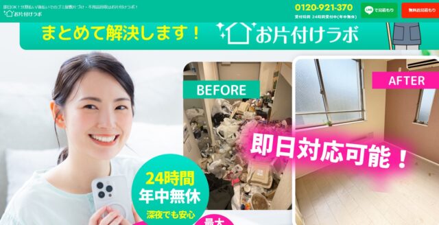 24時間365日いつでも相談でき、即日の片付けにも対応しています。支払の選択肢も多く、最大60回払い(希望者)にも対応しています。他社でゴミ屋敷の片付けを断られてしまった人にとっても、気軽に相談できる業者としてもおすすめです。