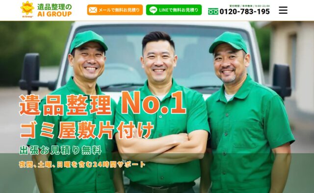 業界最安値で深夜や早朝にも対応できる。分割払いの相談もできるため、費用を抑えつつ迅速で片付けることも可能