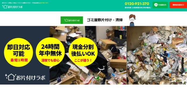 即日対応や、24時間年中無休で深夜のゴミ屋敷の片付けにも対応している。現金分割払いや後払いなど支払を柔軟に選択できるのも特徴。 |