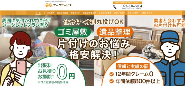 丸投げでゴミ屋敷の片付けができ、簡易清掃まで無料で依頼できる。12年間クレームなしという確かな実力を持っている。 |