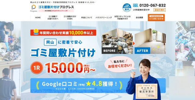 業界最安値で、どのような状況のゴミ屋敷にも対応している。エリア内であればスピード対応も期待でき、専門性の高さにも定評がある。 |